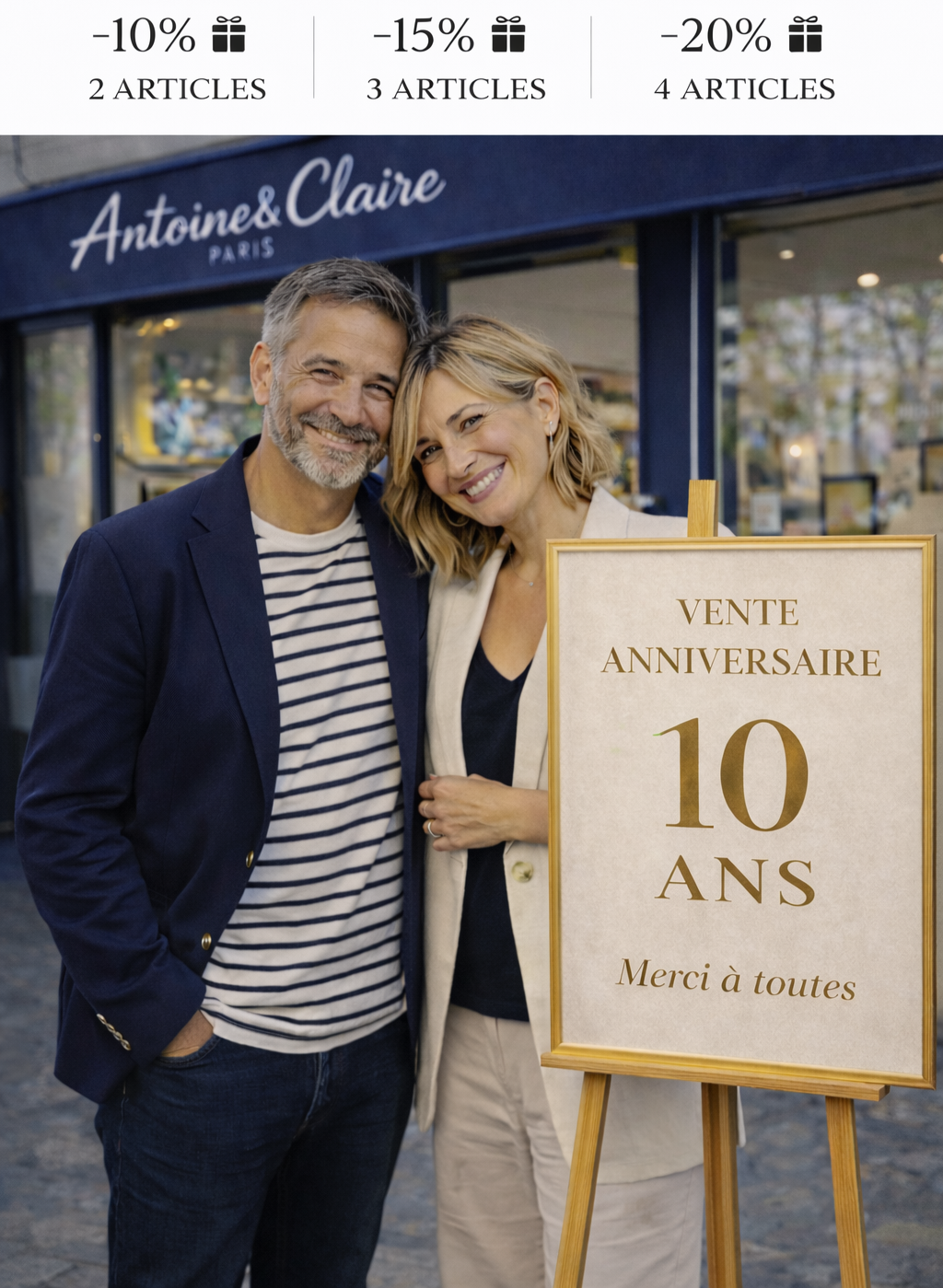 Pour vous remercier, nous célébrons notre Vente Anniversaire avec jusqu’à -70 % sur nos créations les plus aimées.