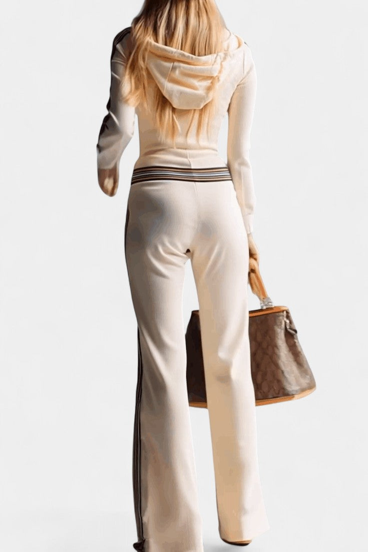 Angélise revisite l’esprit rétro avec une touche sportive et moderne. Confectionnée en maille douce et respirante, cette combinaison à capuche séduit par son col en V zippé et ses rayures contrastées à la taille et aux poignets. Sa coupe ajustée sublime la silhouette tout en offrant une liberté de mouvement et un confort optimal, idéale pour un style chic et décontracté.