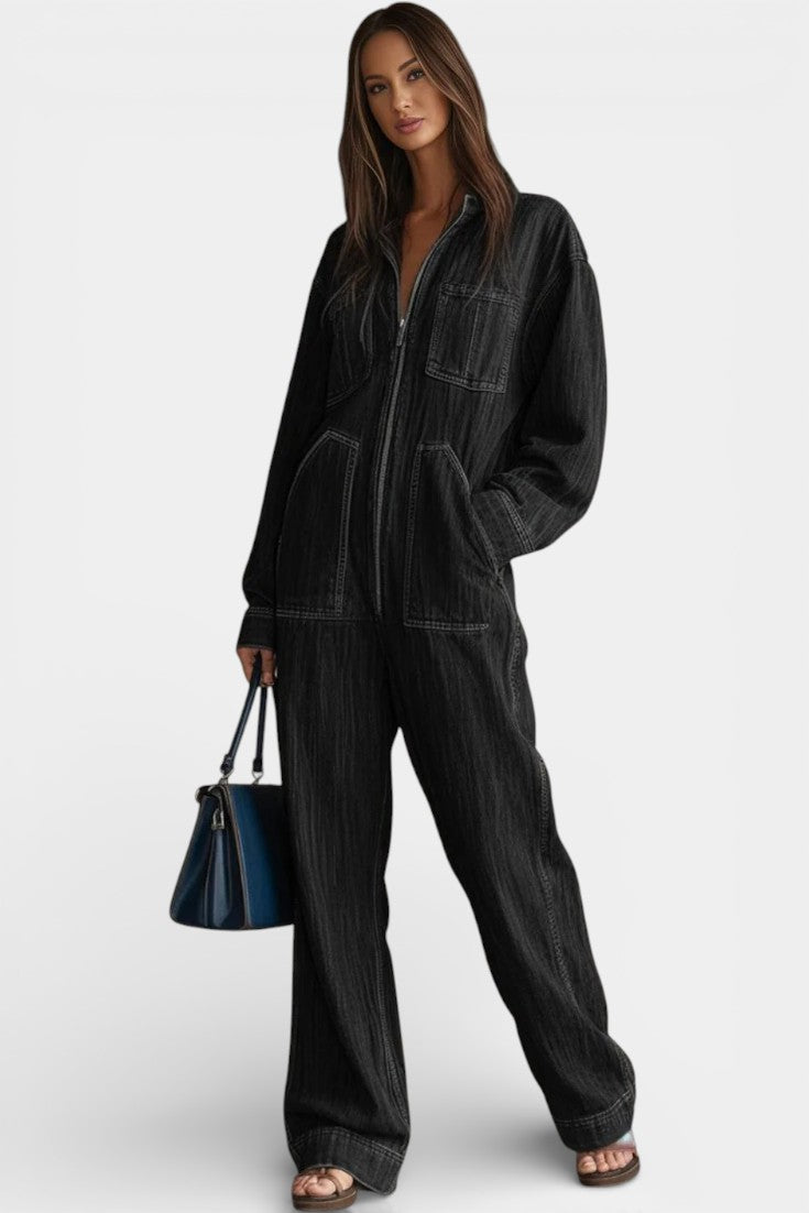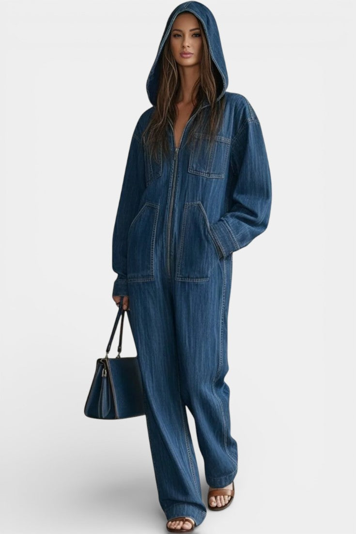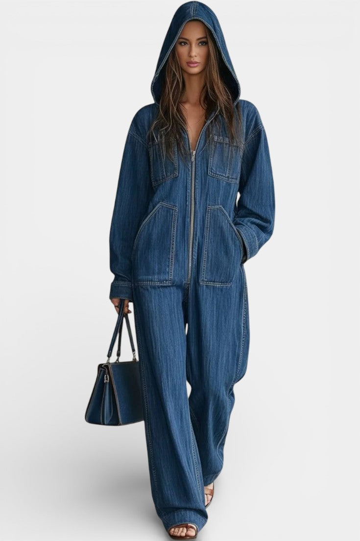 Urbaine et résolument moderne, la combinaison Écrin incarne l’équilibre parfait entre confort assumé et style streetwear maîtrisé. Sa coupe ample à jambes larges évasées crée une silhouette fluide et contemporaine, tandis que la capuche et la fermeture zippée apportent une touche décontractée et fonctionnelle. Conçue pour offrir une liberté de mouvement totale, elle séduit par son allure oversize et son esprit boyfriend affirmé. Une pièce forte, pensée pour un quotidien stylé sans contrainte.