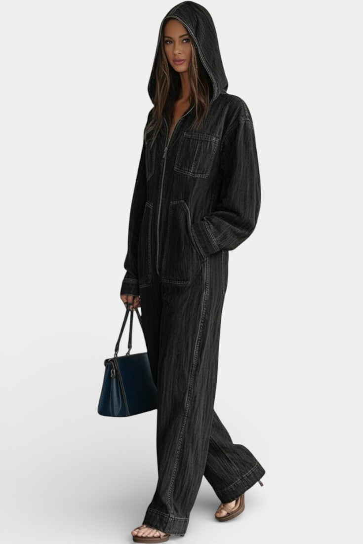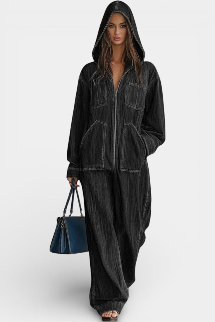 Écrin Combinaison Décontractée à Capuche et Jambes Évasées