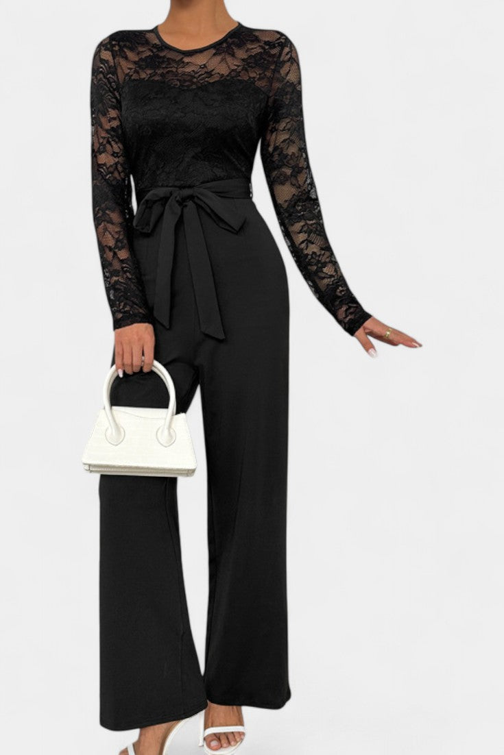 Éviana Combinaison Élégante en Dentelle et Taille Nouée