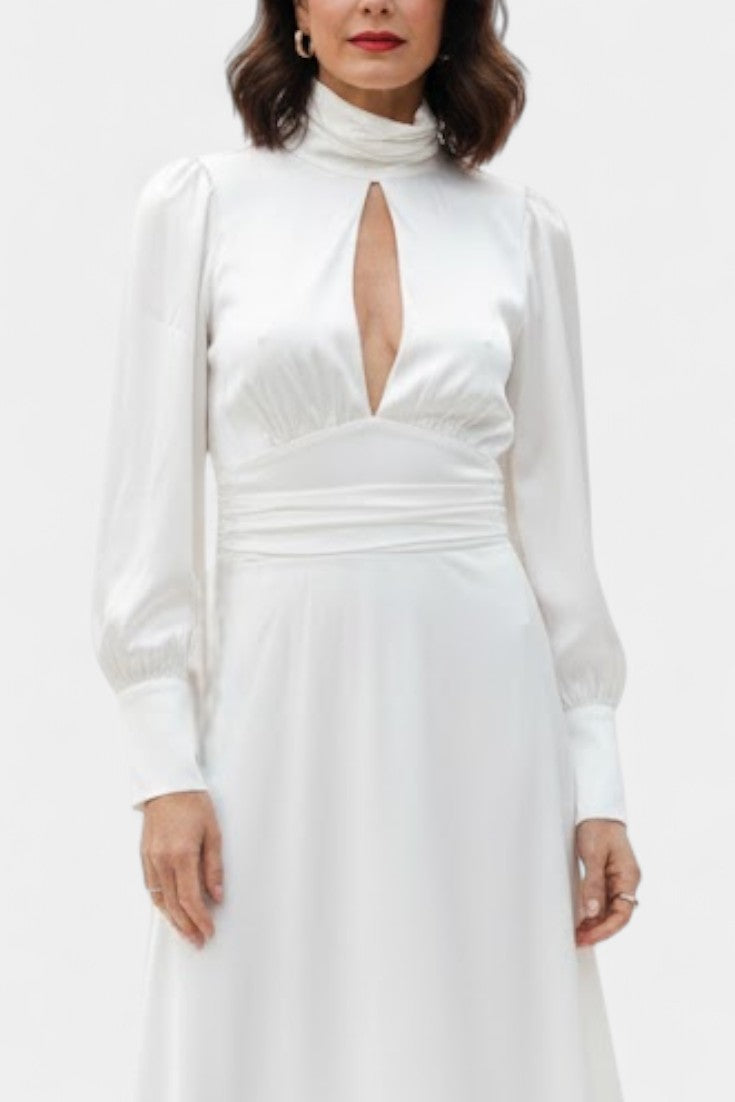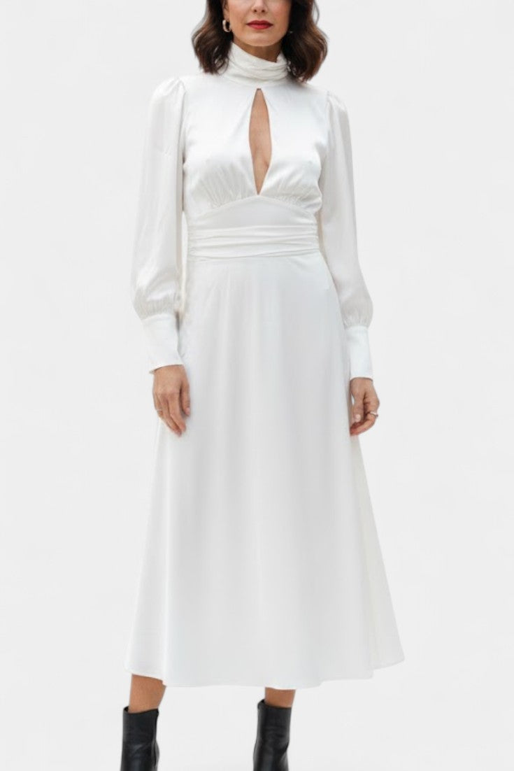 Abundia Robe Longue Satinée à Col Montant et Découpe Délicate