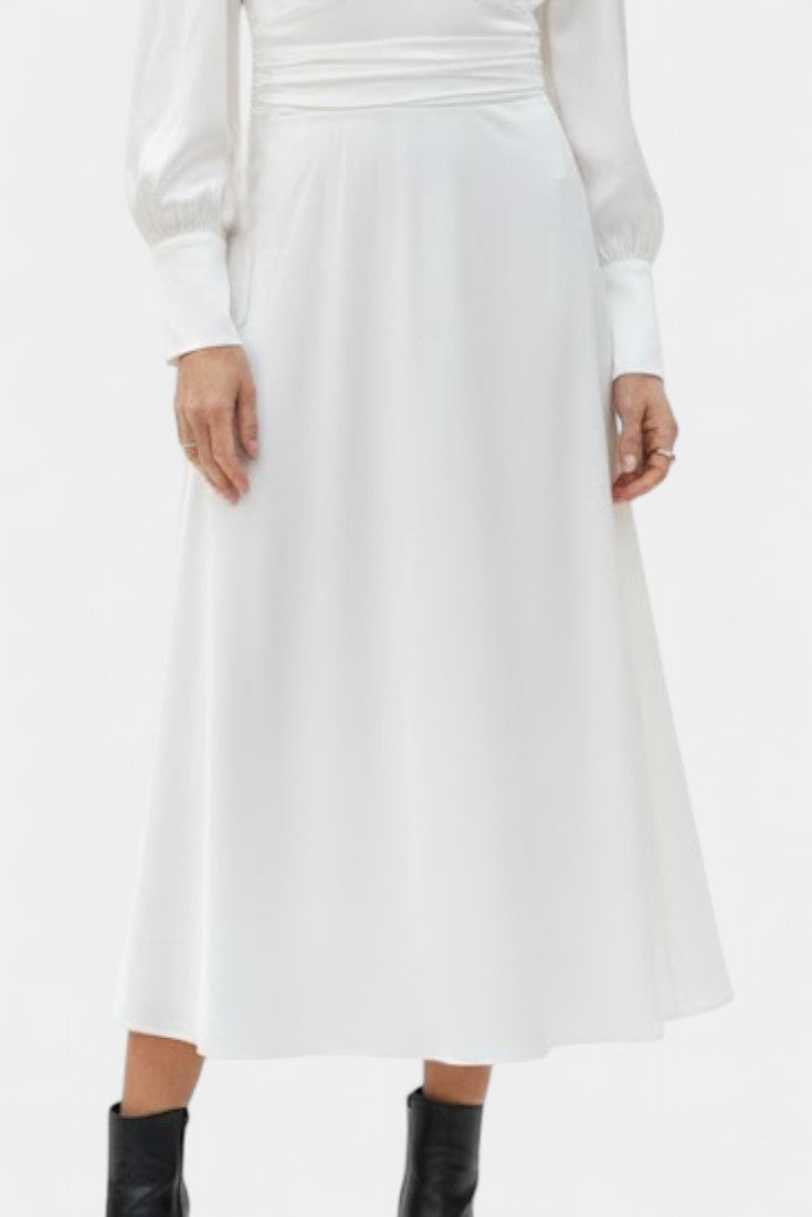 Une robe d’une élégance aérienne, pensée pour sublimer la silhouette avec douceur et sophistication. Abundia séduit par son col montant drapé, sa découpe frontale subtilement sensuelle et sa taille froncée qui structure la ligne avec finesse. Son tissu satiné fluide capte la lumière avec délicatesse, tandis que la jupe longue et évasée accompagne chaque mouvement avec grâce. Une pièce raffinée qui conjugue féminité moderne et allure intemporelle.