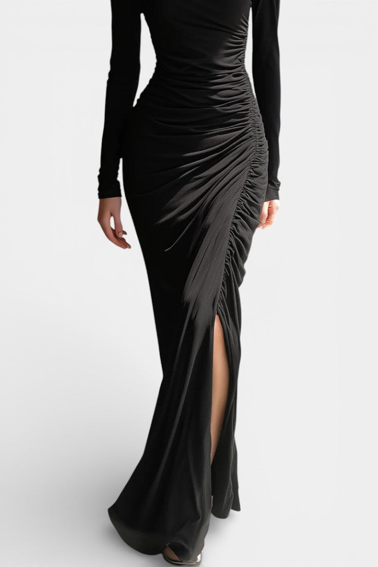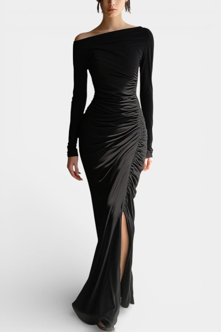 Sculpturale et résolument élégante, la robe Adalsinde séduit par son allure fluide et sensuelle. Confectionnée en jersey doux et extensible, elle épouse la silhouette avec naturel tout en offrant un confort remarquable. Son décolleté épaules dénudées apporte une féminité affirmée, tandis que les fronces latérales et la fente frontale créent un jeu de drapé subtil qui allonge la ligne et capte le regard. Une pièce noire intemporelle, pensée pour les moments où l’élégance doit être évidente sans être ostentatoire.