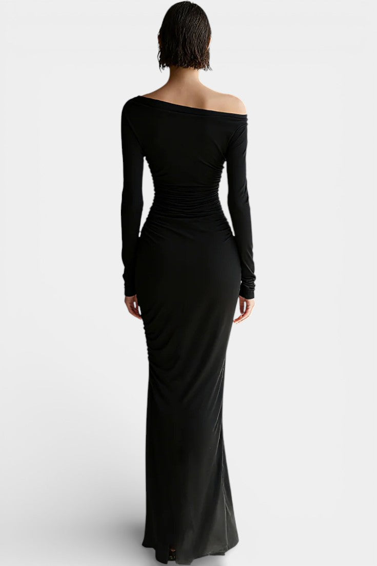 Adalsinde Robe Longue Élégante Noire en Jersey Épaules Dénudées