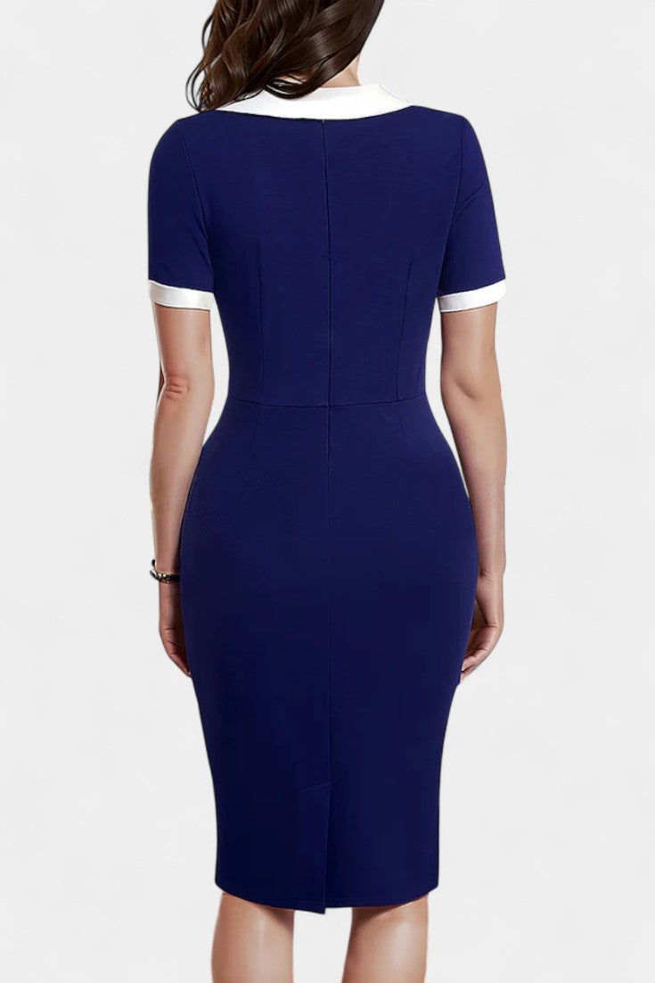 Une robe pensée pour une élégance professionnelle nette et contemporaine. Delsa séduit par sa coupe fourreau midi qui structure la silhouette avec précision, associée à un jeu de couleurs contrastées qui apporte caractère et modernité. Les manches courtes et la ligne épurée en font une pièce idéale pour la saison estivale, alliant confort, sobriété et assurance.