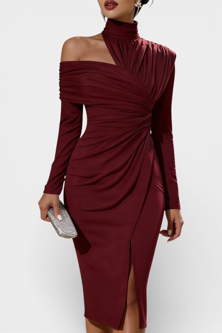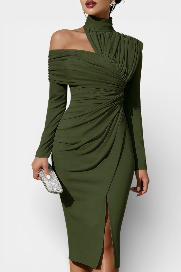 Naia Robe de Soirée Asymétrique Drapée à Col Montant Une Épaule