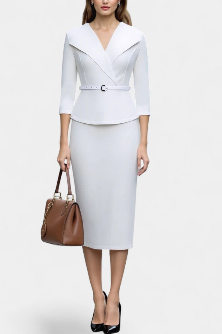 Une robe pensée pour sublimer la silhouette avec précision et élégance. Ysabela séduit par sa coupe droite ajustée, structurée par un col à revers raffiné et une ceinture qui souligne délicatement la taille. Les manches trois-quarts apportent équilibre et modernité, tandis que la longueur midi assure une allure féminine, soignée et intemporelle. Une pièce essentielle pour une élégance maîtrisée en toute circonstance.